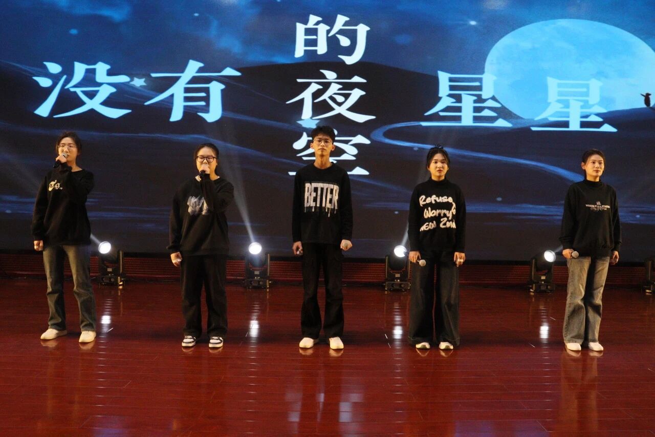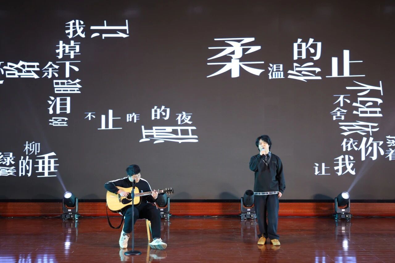 师生携手呈现的表演同样温情满溢。齐光老师的乐器演奏《无羁》奏响古风侠韵,带领观众走进烟雨江湖的豪情意境;辅导员甘露与研究生张嘉祎合作的舞蹈《疯狂动物城》,以童趣盎然、活力四射的演绎收获台下阵阵喝彩;辅导员史小倩、石培琳、张慧卿、张威与研究生王新宇等师生带来的诗朗诵《写中国》,字字铿锵、深情款款,抒发了对祖国的无限热爱与深切敬仰。晚会最后,全体师生共同唱响《相亲相爱》,悠扬的旋律中流淌着彼此陪伴、同心向前的深厚情谊,为整场演出画上了温暖而有力的句点。