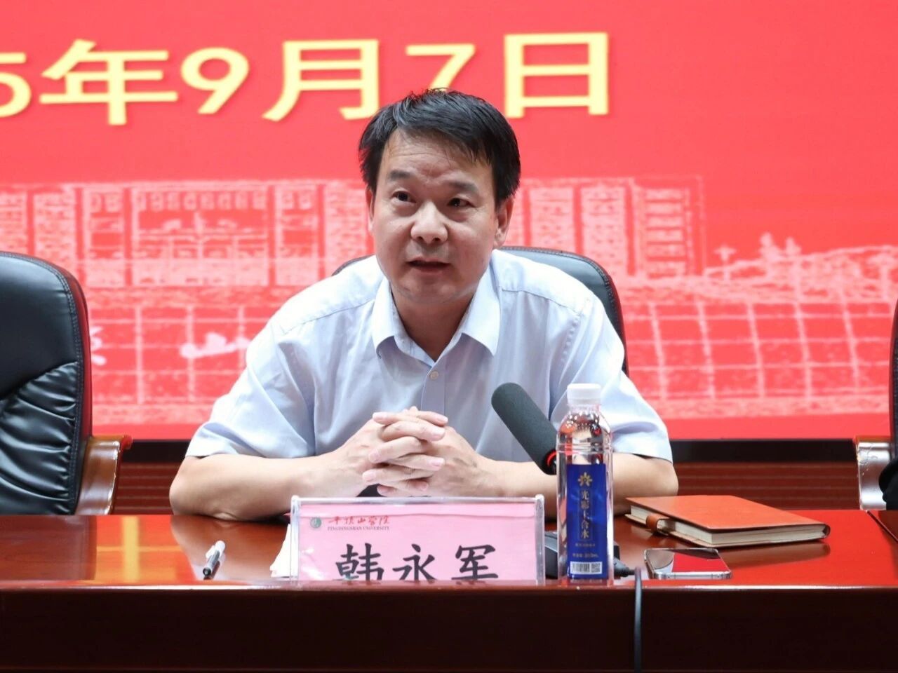 韩永军代表学院全体师生对新同学的到来表示热烈欢迎,并从学科建设、师资力量、科研平台、人才培养成果等方面介绍了学院的整体情况。同时,他对新生提出四点期望:一是要 “学会学习,掌握方法”,培养自主学习与深度思考能力;二是要 “心怀家国,志存高远”,将个人理想融入国家发展与行业需求;三是要 “拥抱生活,全面发展”,积极参与实践活动,提升综合素养;四是要 “注意身体,强健体魄”,养成良好作息与运动习惯,为学业与人生打下坚实健康基础。
