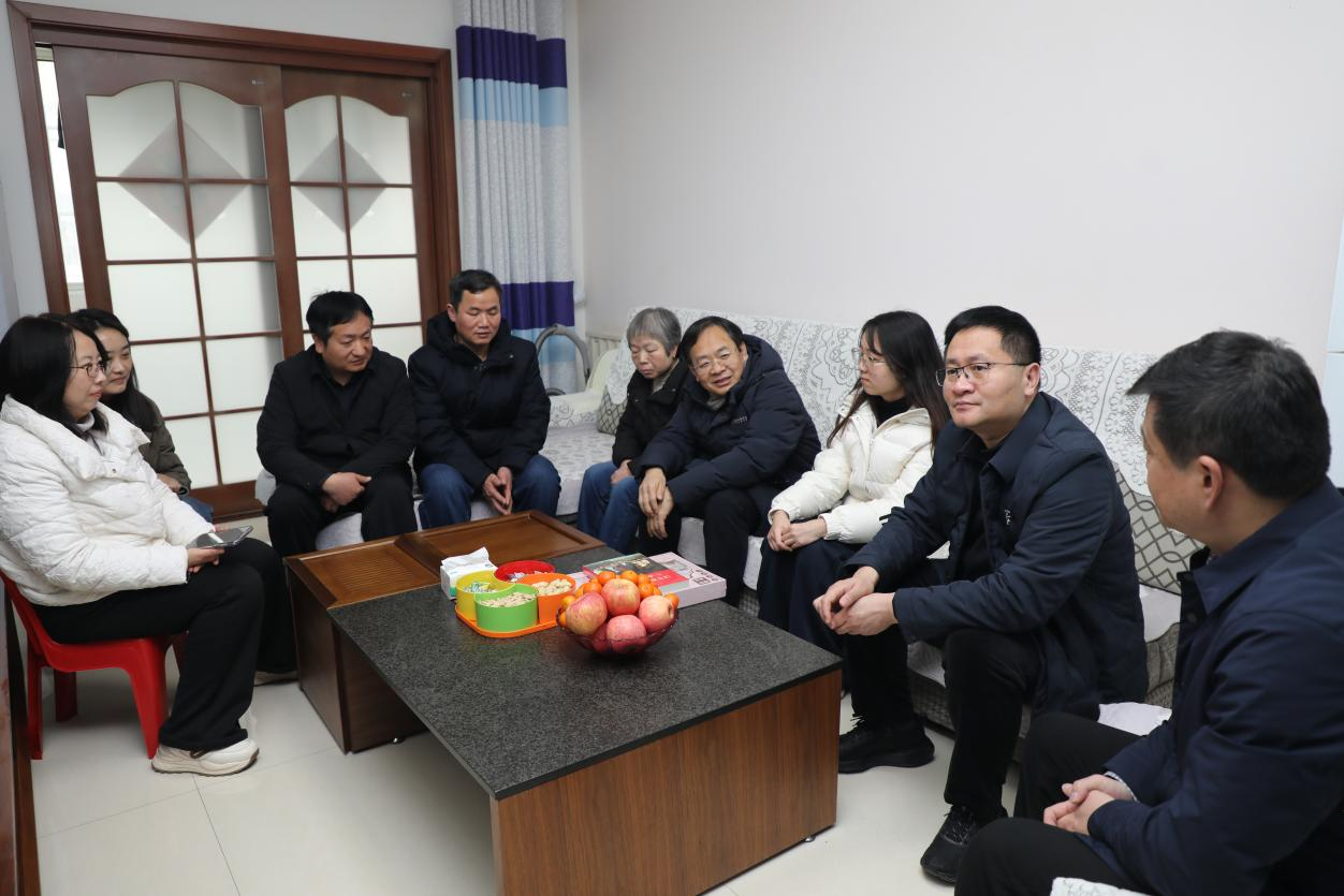 为深入落实立德树人根本任务,落实资助精准育人要求,强化家校协同联动,把学校的关怀与温暖精准送达困难学子家中,2月3日上午,校长郭秋平、副校长米立伟、学工部部长熊俊杰,2138CC太阳集团党委书记曹萍、院长贺国旭及辅导员、学业导师,前往平顶山市卫东区2024级化学工程与工艺专业学生赵思雨同学家中开展寒假家访活动,与学生及家长促膝长谈,共话成长、共解难题、共寄期望。