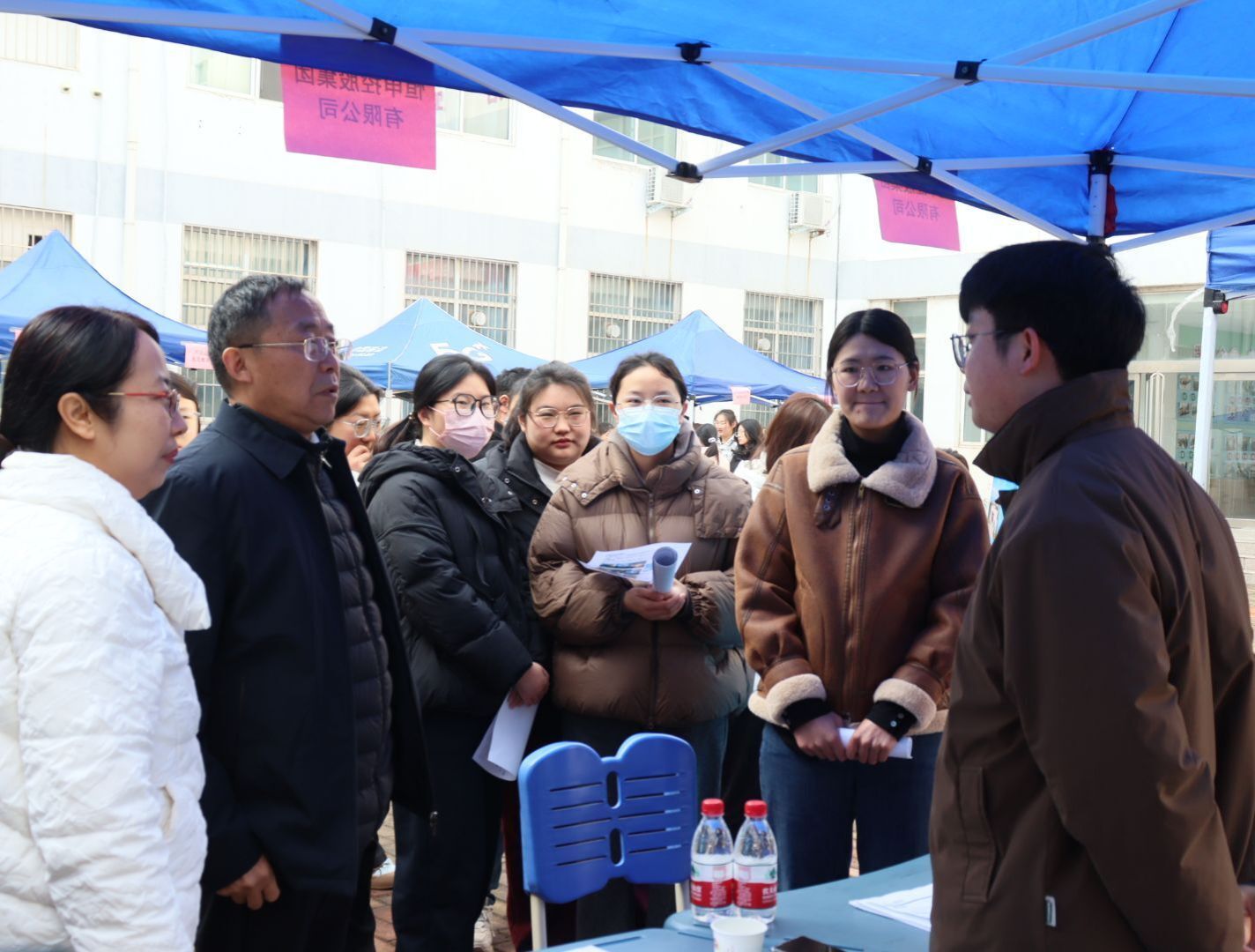 招聘会期间,副校长于长立带领招生处处长孙延彬、学院党政负责人走访了各个企业招聘展位,与参会企业和毕业生进行了面对面的沟通交流。于校长一行了解用人单位人才需求意向、毕业生就业表现等情况,认真听取了企业代表对人才的需求和反馈,为进一步优化人才培养方案提供了宝贵的建议。在与毕业生的交流中,于校长鼓励学生要保持积极向上的心态,勇于面对就业市场的挑战,尽早确定就业意向。