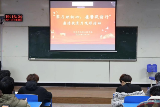 为深入推进学院廉洁文化建设,帮助大学生扣好廉洁人生“第一粒扣子”,推动大学生廉洁从学。12月1日晚上,化学环境与工程学院在4106、4213、4311教室开展“霁月映初心,廉馨促前行”廉洁教育月系列活动之主题观影,我院2024级全体学生参加。